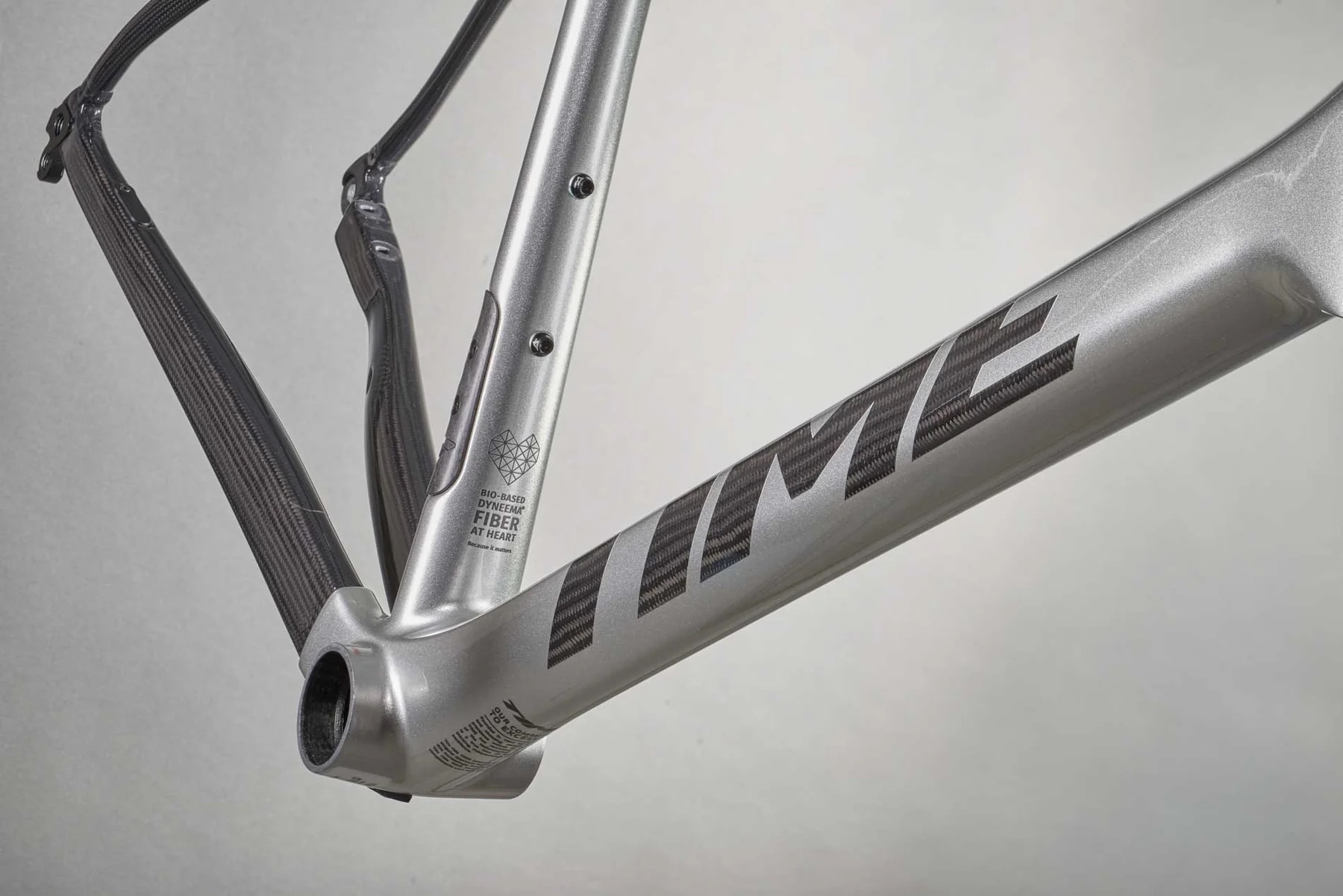 Braided Carbon Structure is our term for the weaving of fibres into complex bi-directional ‘socks.’ These tubes are easy to tune with different materials – TIME currently choses from 16 filaments to perfectly tailor our layups. This process allows something that is unheard of in the cycling world; continuous, unbroken fibres that run the full length of a structure.